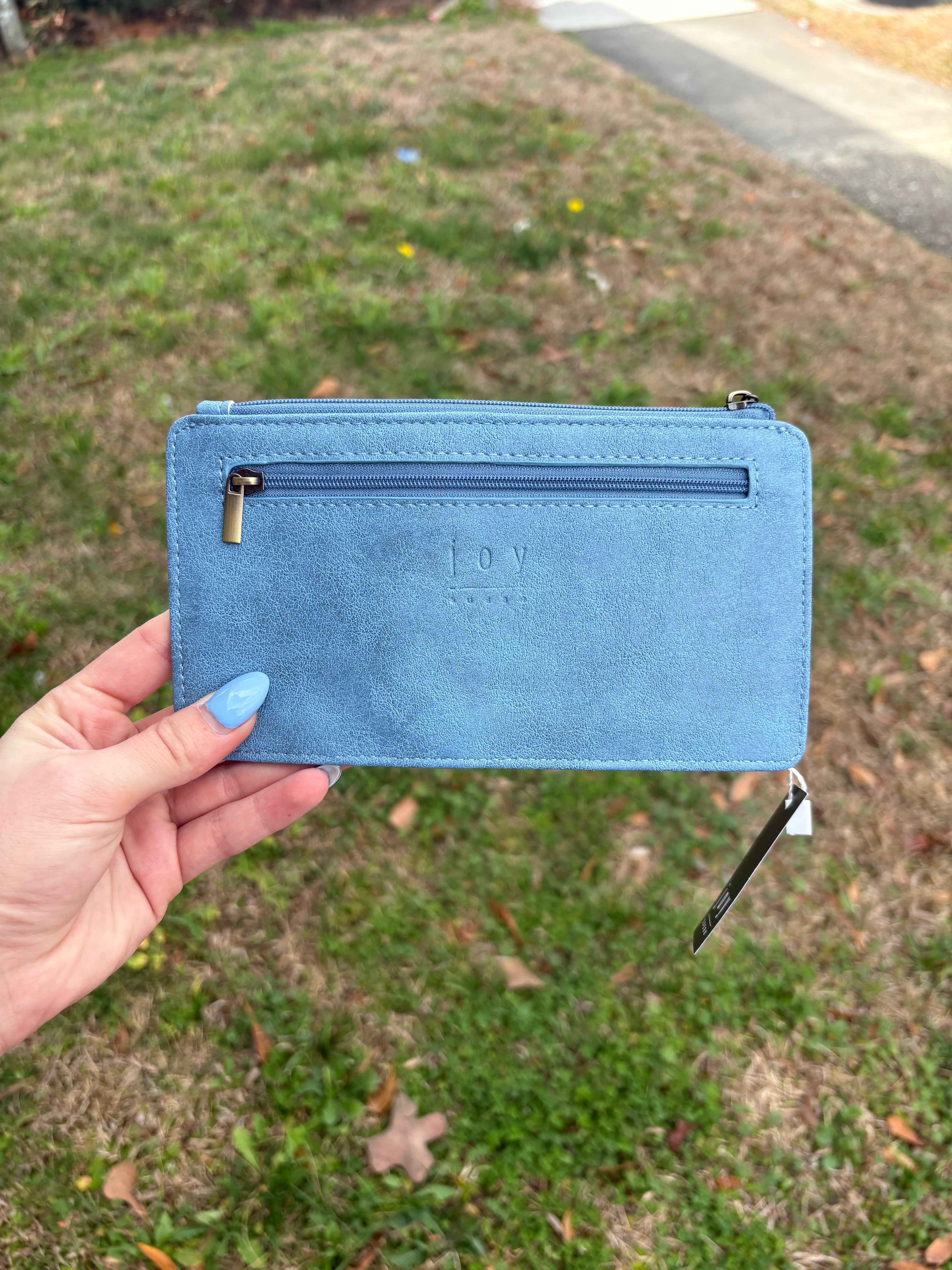 This slim and sleek card wallet has 9 credit card pockets, an ID window, zippered change pocket and zippered billfold pocket all in casual distressed Vegan Leather.