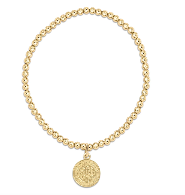 - Made with 3mm, 14kt gold-filled beads, 14kt gold-filled 12mm blessing disc featuring Saint Benedict