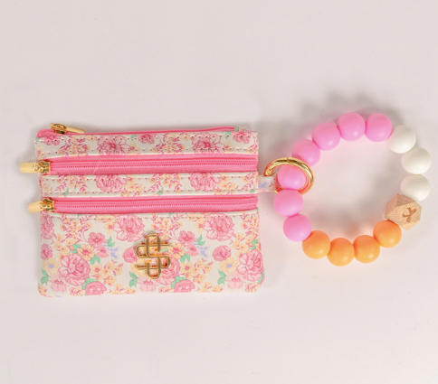 Keep your keys and wallet handy with our cute bangle bead wallet. Wallet includes card slots with a snap protector and zipper pouch for coins. Made of 100% PU leather.