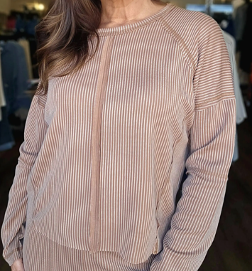 Cozy meets effortlessly cool in this set. Featuring a baby cable knit texture, this two-piece set look is designed for lounging in style or stepping out with ease. The boxy top offers a relaxed fit with a crew neckline, drop shoulders, long raglan sleeves and raw trim details for that perfectly undone finish. Paired with high-rise wide leg pull on pants featuring an elastic waistband, it delivers comfort without sacrificing style.