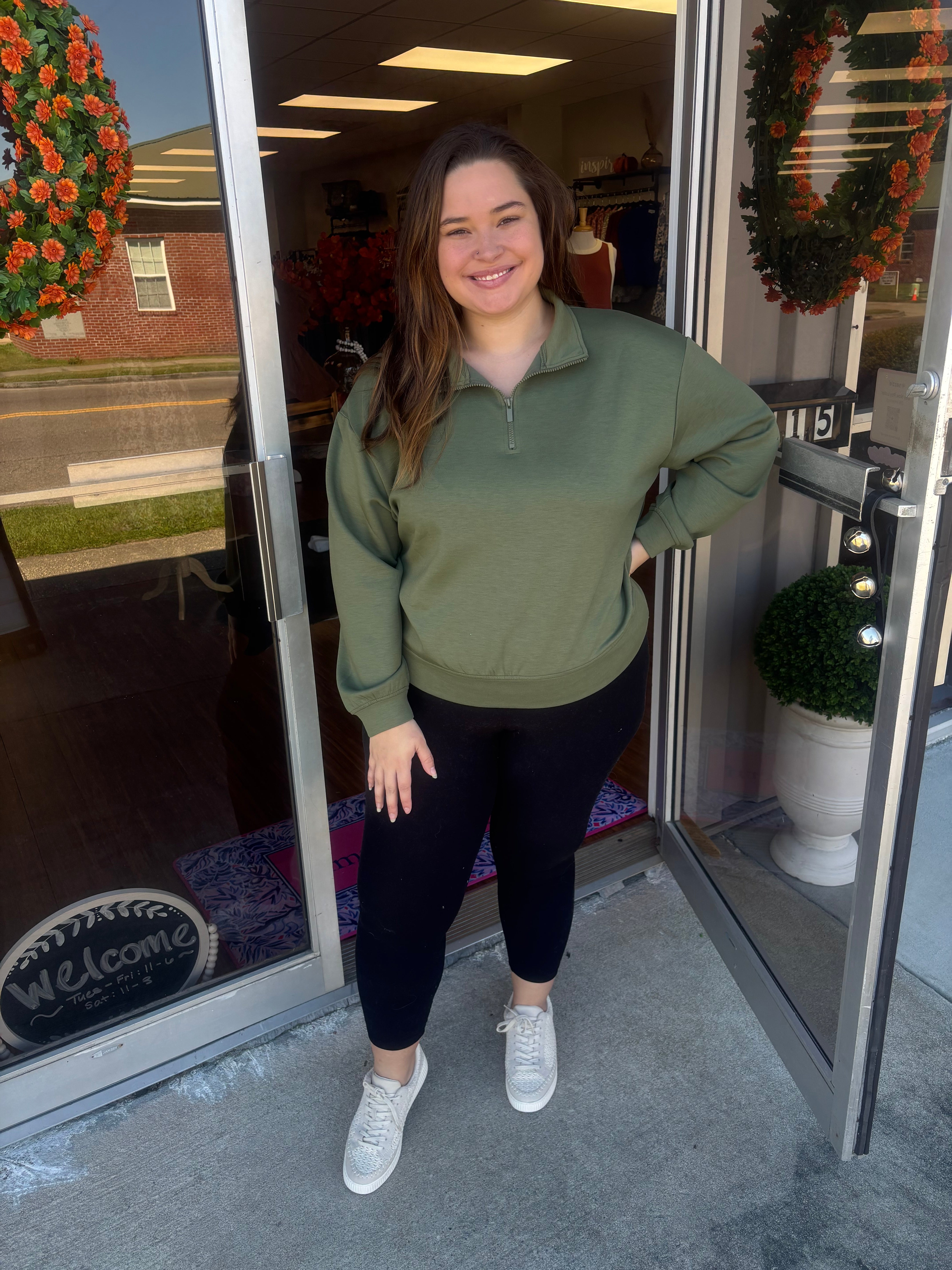 Its soft scuba fabric keeps you comfy, while the half-zip lets you adjust your vibe Whether you're lounging or out and about, this pullover adds a fun twist to your casual look.