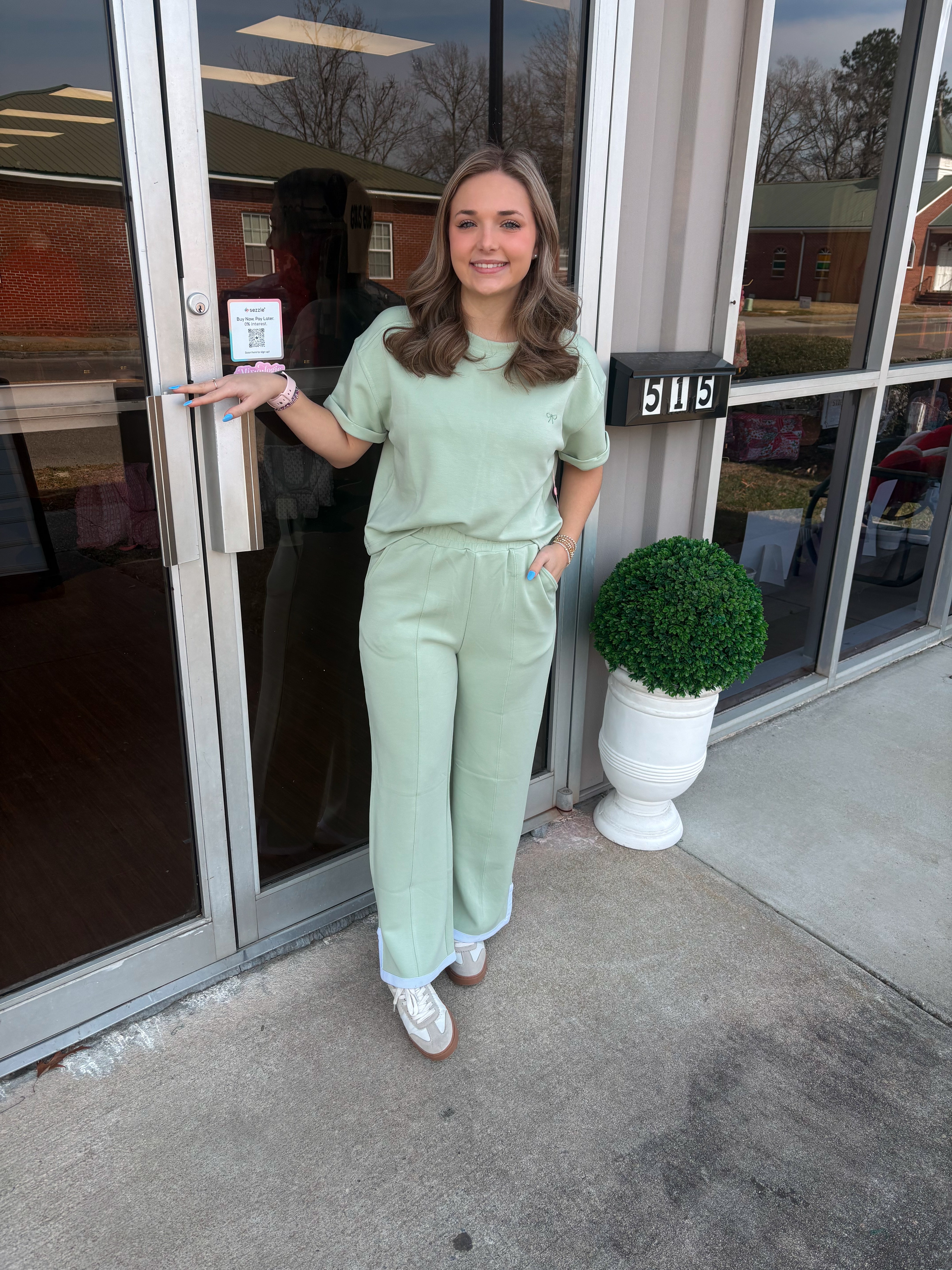 This adorable Simply Southern Crop Lounge Top for Women in Sage! Made with a comfortable modal material, crew neckline, and a cropped silhouette, this is the perfect tee for those warm, sunny days.