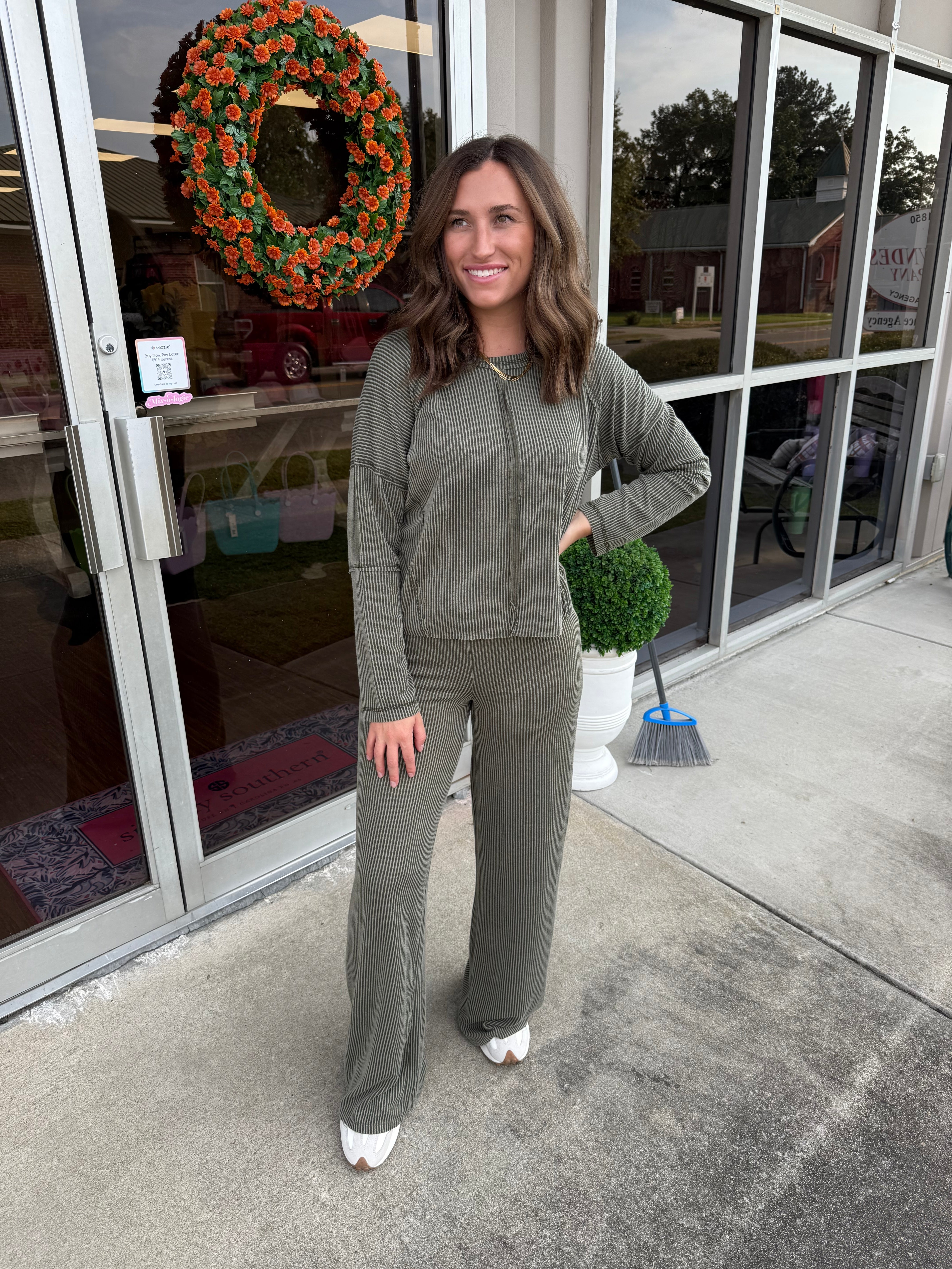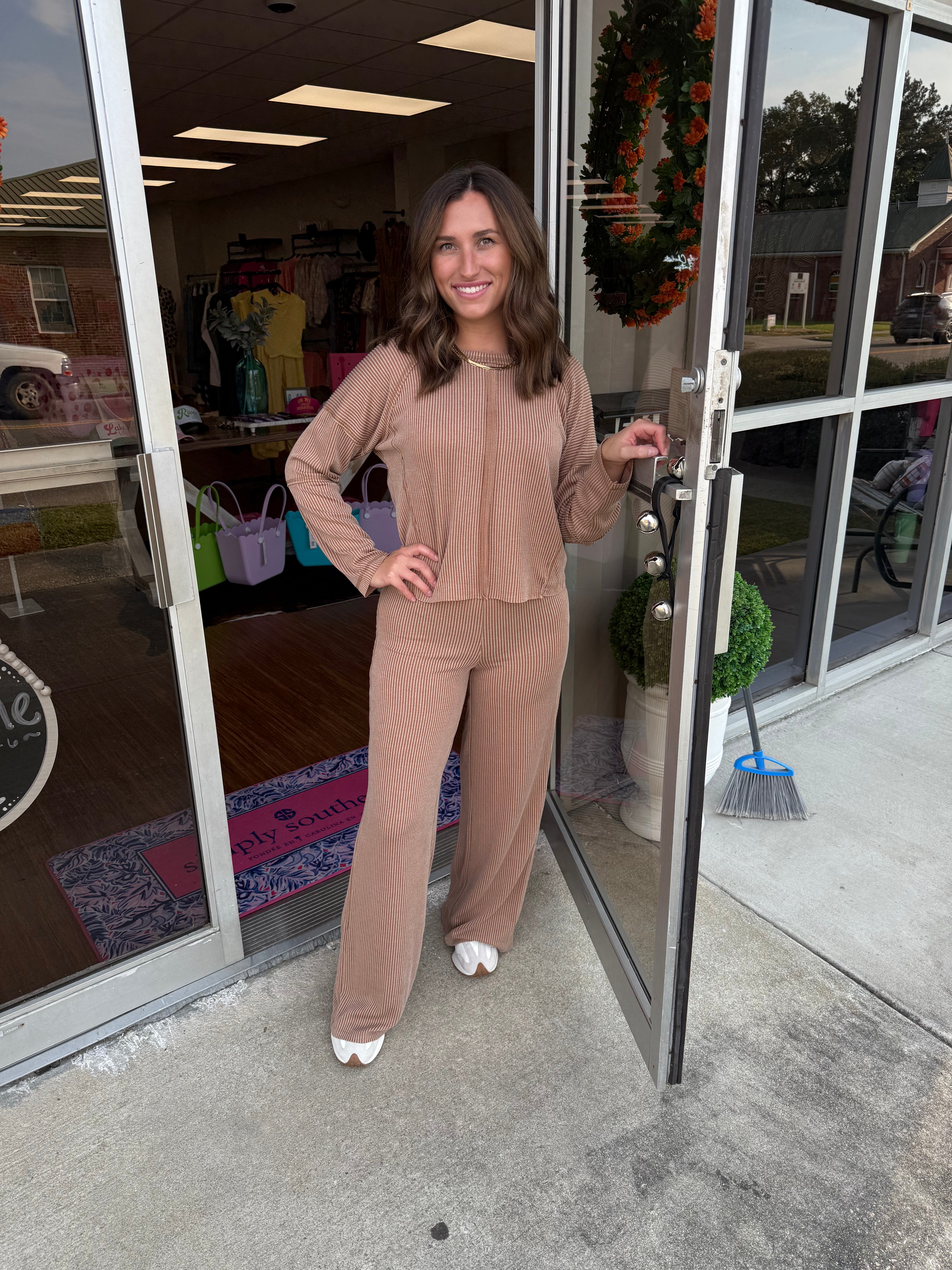 Cozy meets effortlessly cool in this set. Featuring a baby cable knit texture, this two-piece set look is designed for lounging in style or stepping out with ease. Fits tts.