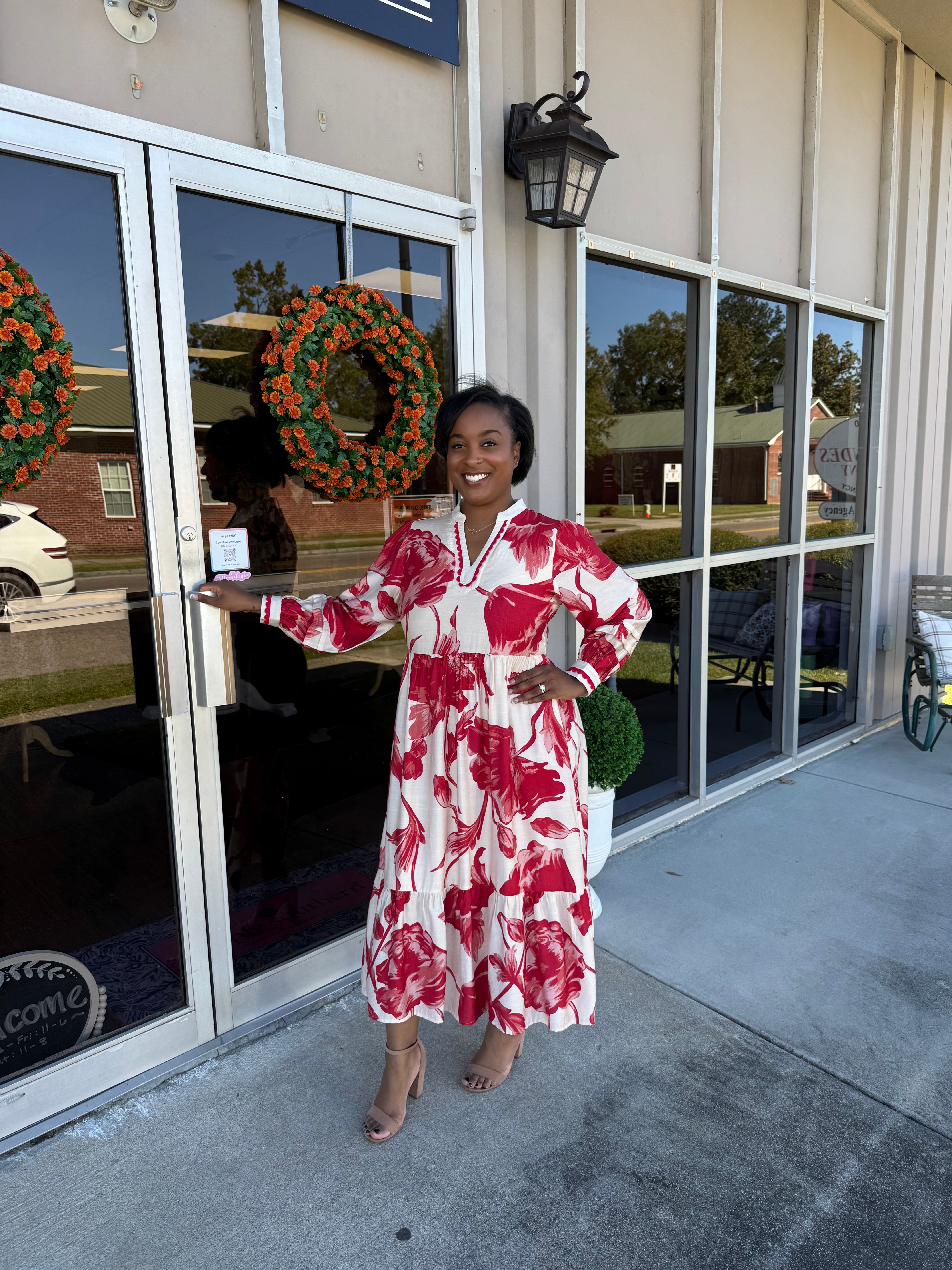 This dress is as comfy as it is cute! The flow silhouette and bold floral print with ric rac detailing makes it an easy pick for everything from casual days to weddings! Dress it up with wedges or throw on some cute booties for an effortless vibe.