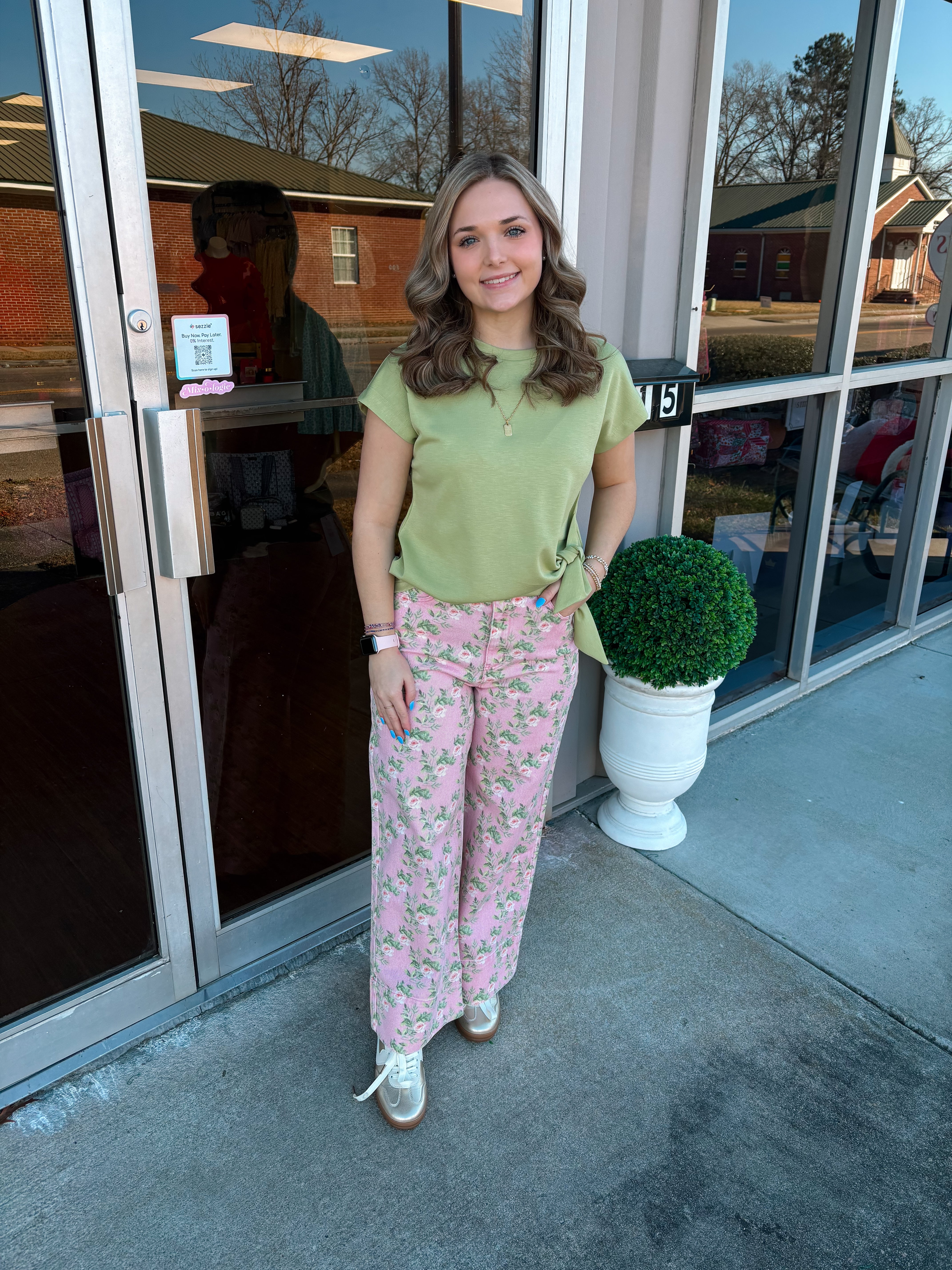 This top features classic cap sleeves and a crew neckline for a universally flattering silhouette. The standout detail is the functional side tie that allows for an adjustable, cinched waist, offering a custom and stylish fit.