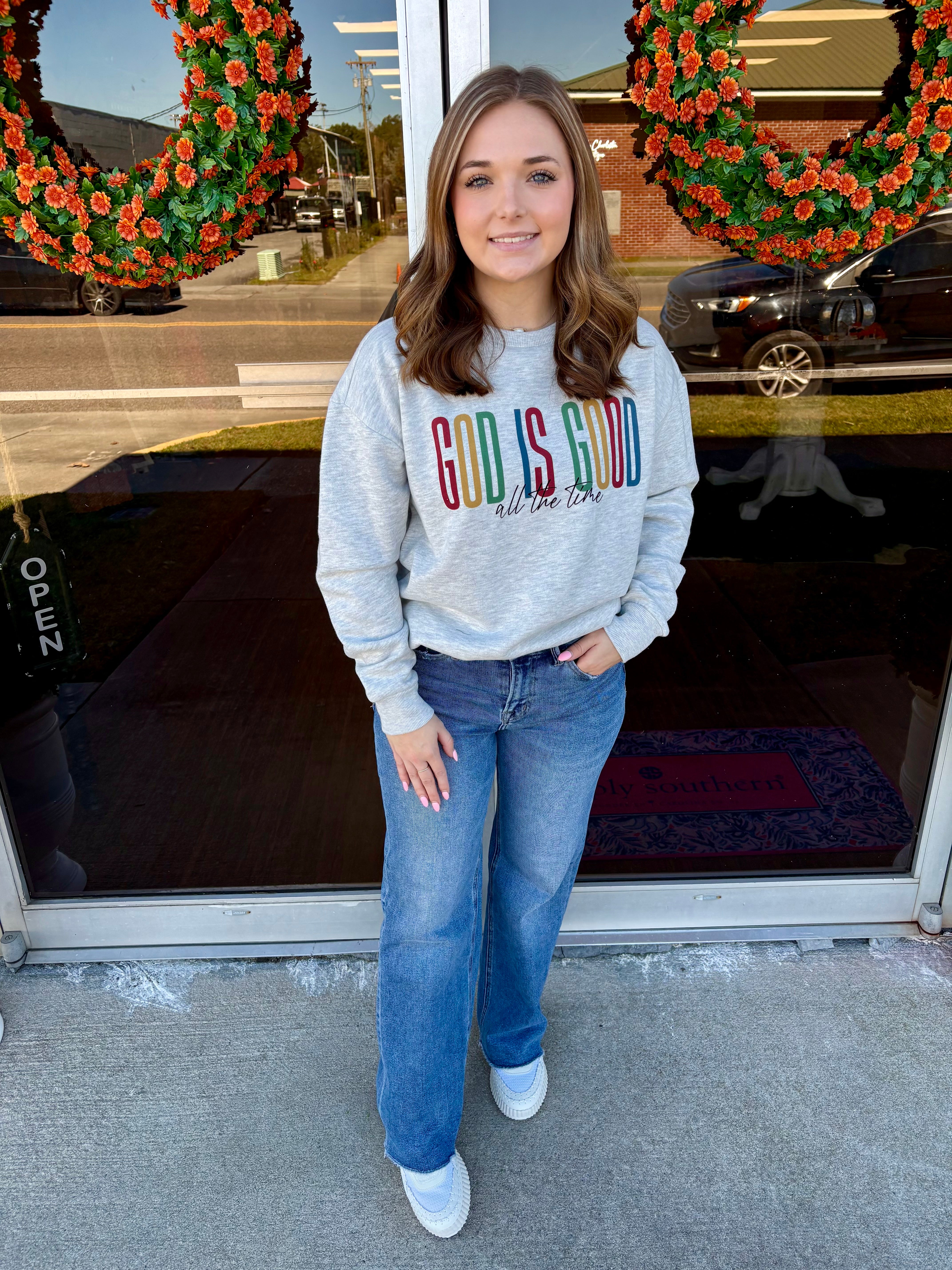 Experience comfort and style with the God Is Good Melange Poncho Fleece. Crafted from a soft blend of 60% cotton and 40% polyester, it features a rounded bottom with a high-low hem for a modern silhouette. The front chest showcases a screen-printed "God Is Good" message, adding a meaningful touch to this cozy fleece perfect for everyday wear.