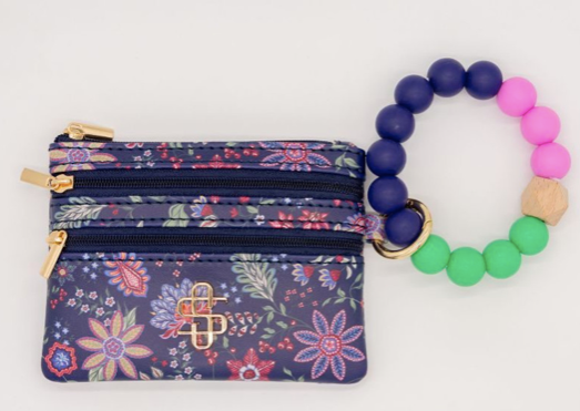 Keep your keys and wallet handy with our cute bangle bead wallet. Wallet includes card slots with a snap protector and zipper pouch for coins. Made of 100% PU leather.