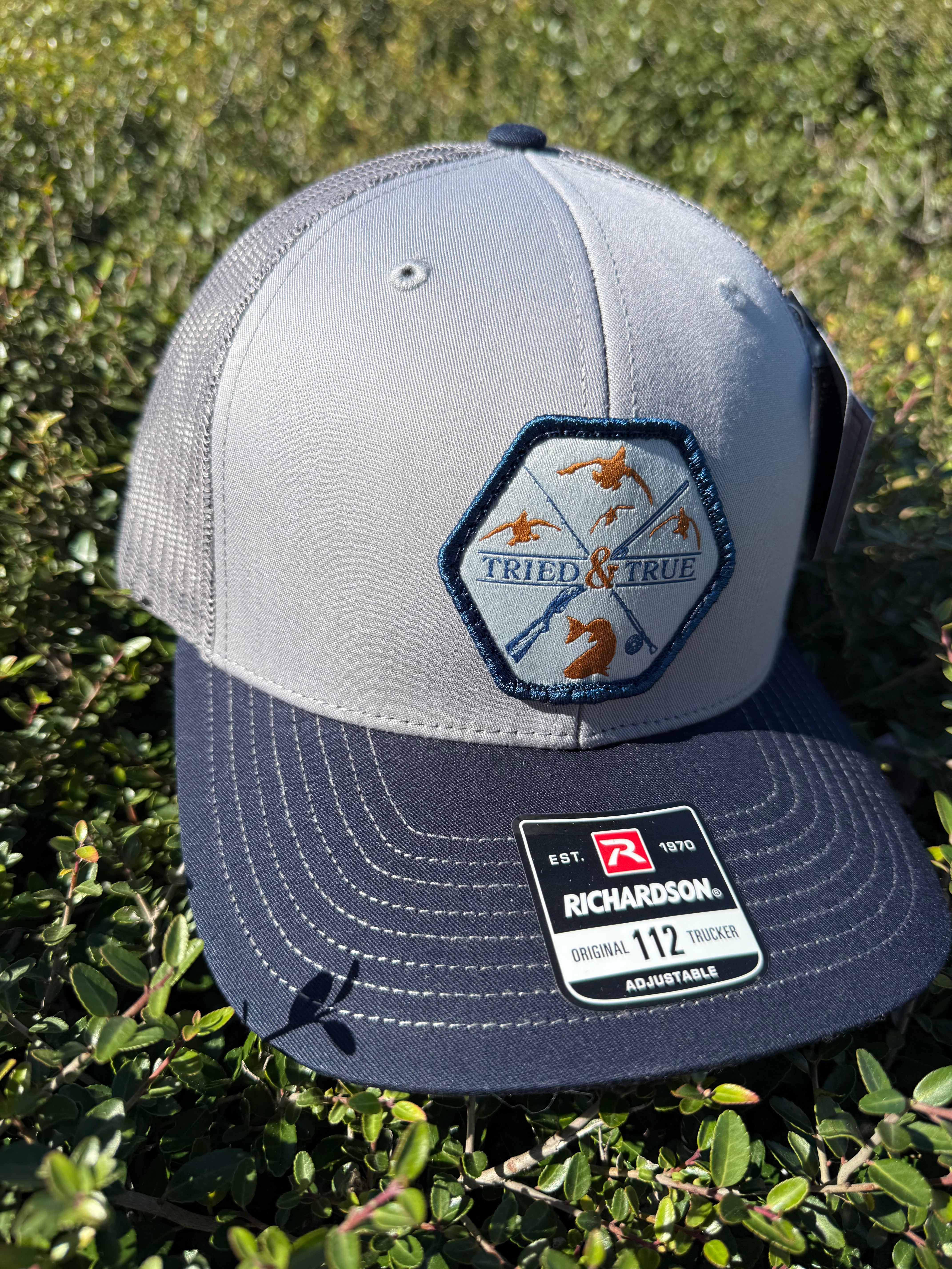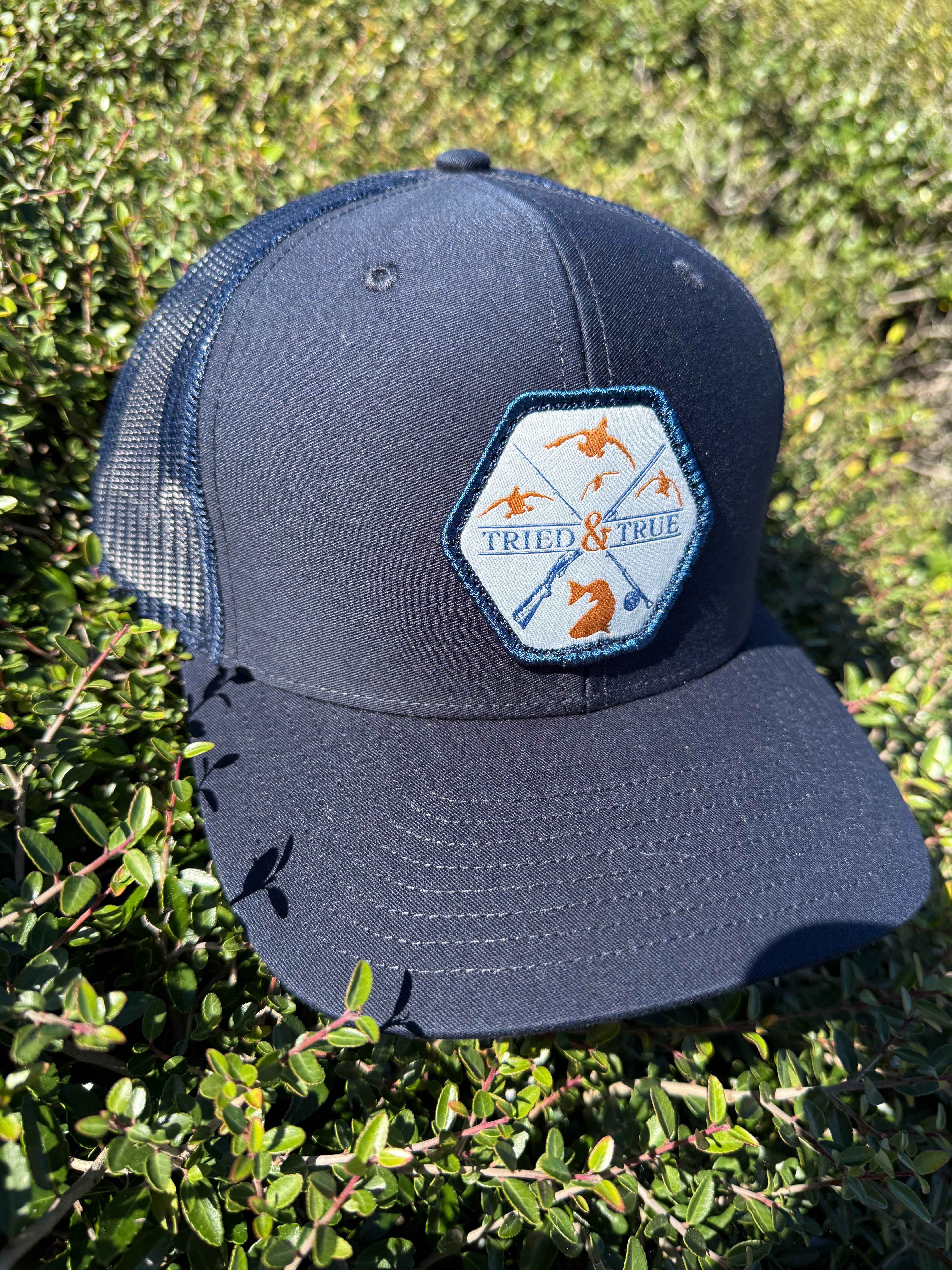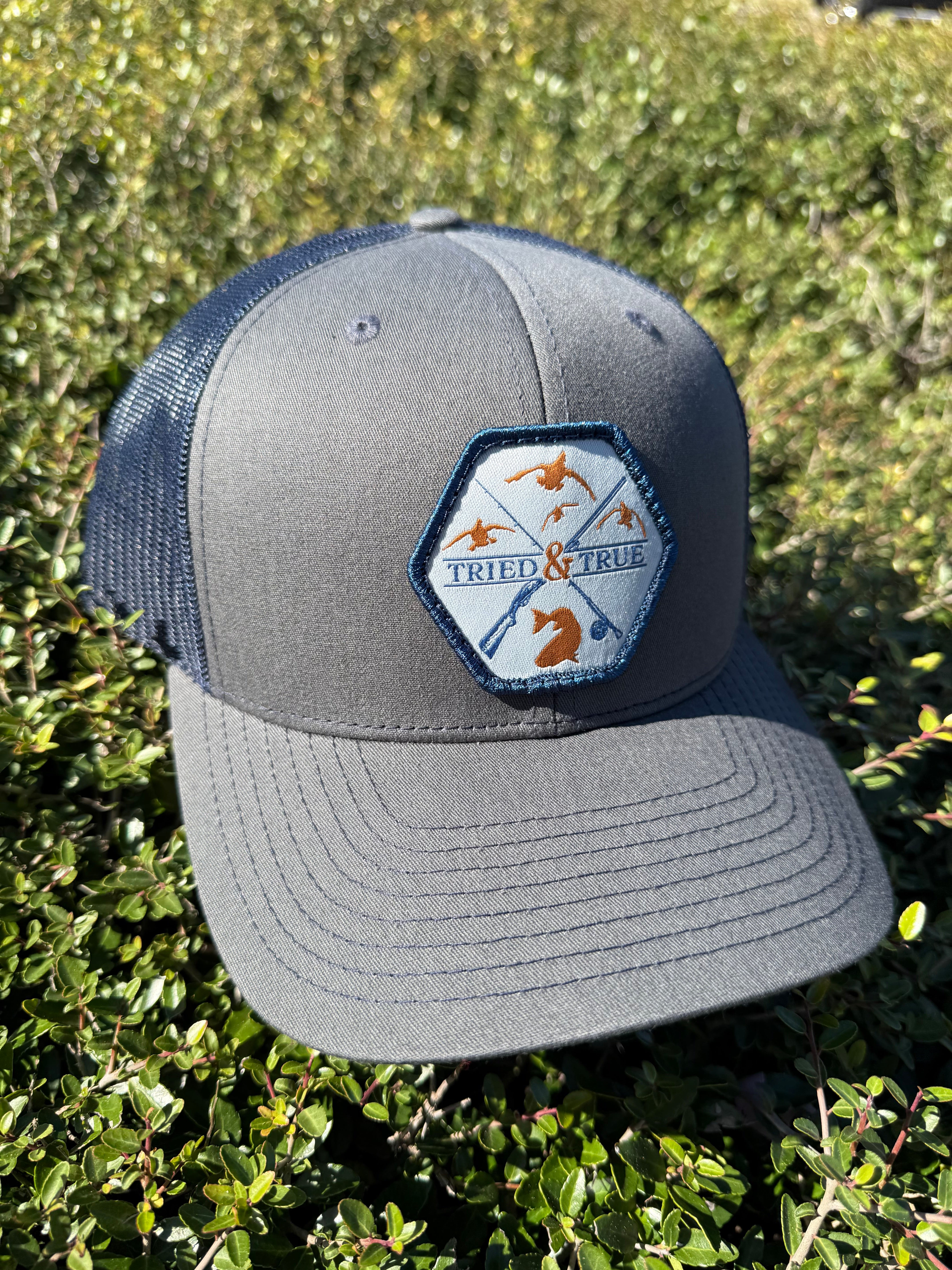 Shield Shaped Patch with words Tried and True and a partial American Flag